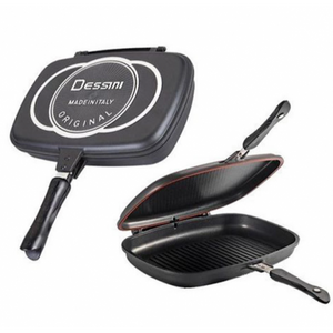 Tigaia grill dubla este fabricata din aluminiu turnat si 3 straturi de granit antiaderent.
