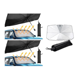 Parasolarul in forma de umbrela pentru parbrizul masinii este protectia ideala impotriva razelor solare, care ajuta inclusiv la reducerea temperaturii in interiorul masinii. Pregatit pentru a fi folosit imediat, parasolarul este comod, usor de depozitat, si pentru fixare, poate fi prins de usile masinii.
